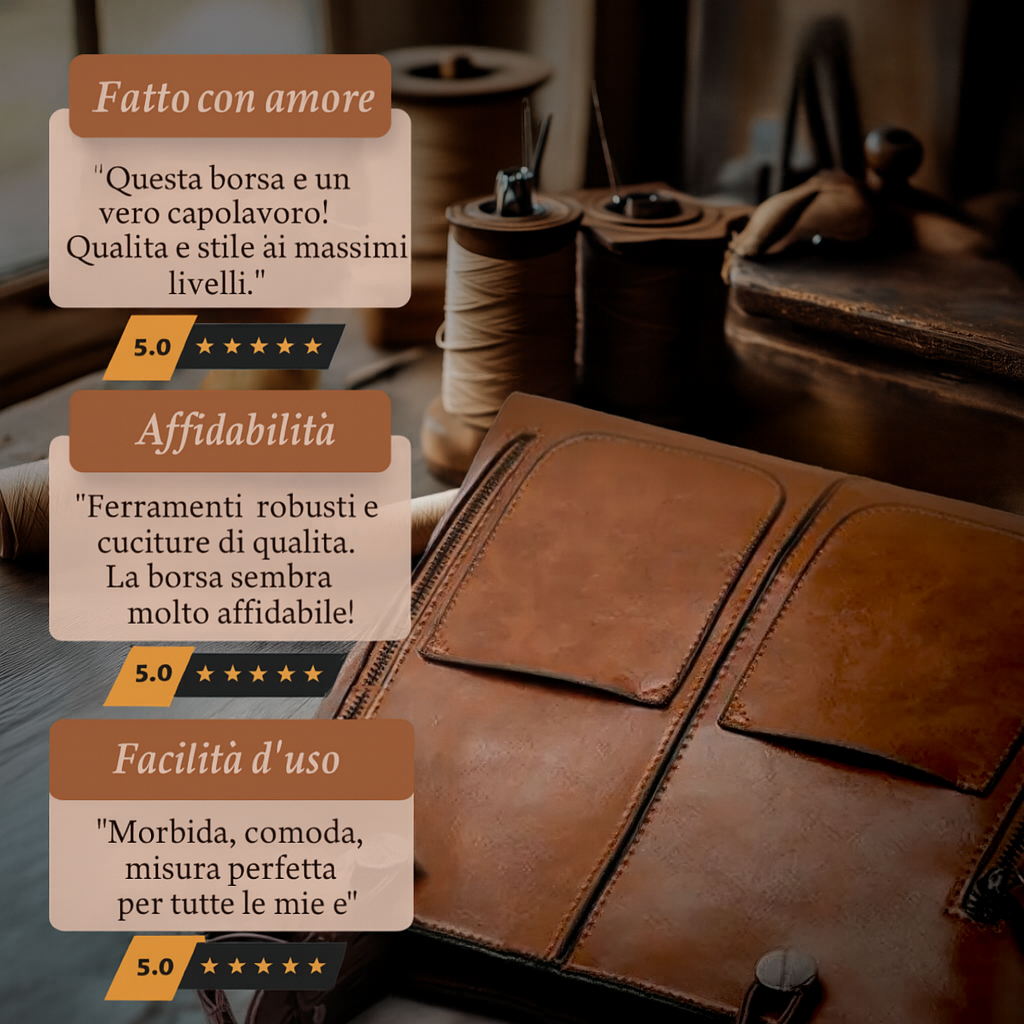 «Ho cercato la borsa in pelle perfetta per anni e finalmente l’ho trovata qui. L’attenzione ai dettagli e la qualità della pelle sono eccezionali. Questa borsa mi durerà per tutta la vita.»
